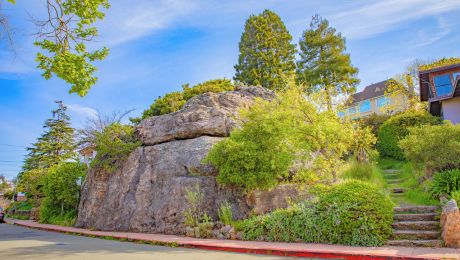 Contra Costa Rock Park is a small neighborhood park featuring a large natural rock formation in North Berkeley. The rock outcrop provides a unique landscape for climbing, scrambling, and exploring, making it a popular spot for children and rock enthusiasts.