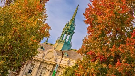 The park’s compact design and central location make it a natural pause point for those passing through. The blend of greenery and historic architecture creates a striking contrast, offering a moment to take in the grand Beaux-Arts facade of Old City Hall against a backdrop of shifting tree canopies.
