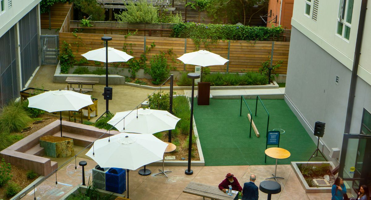 The Maudelle Miller Shirek Community is a transit-rich, mixed-use affordable housing development in Berkeley, CA, offering 87 new rental apartments for low-income households, including 12 units reserved for formerly unhoused households.
