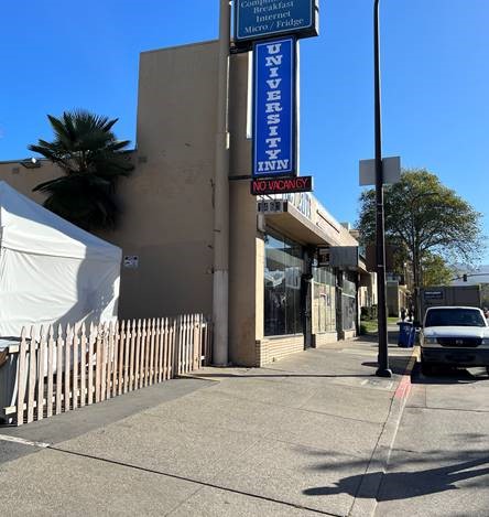 This property at 1461 University was a former hotel, acquired through the state’s Homekey program. Renovation for the 42-unit permanent supportive housing project is in progress.